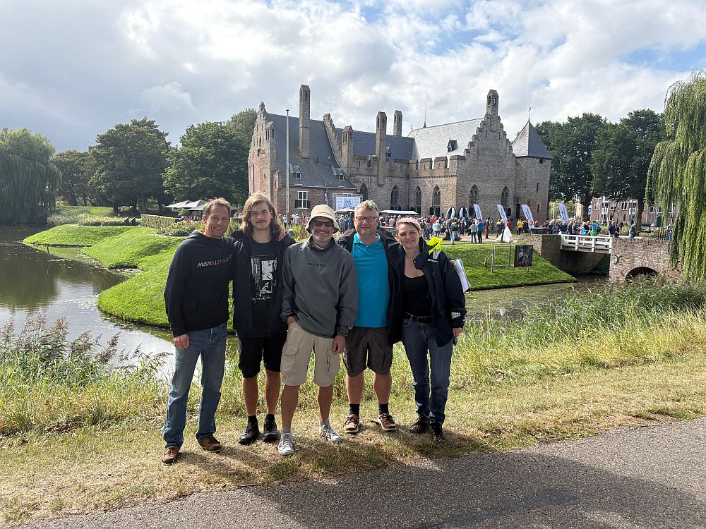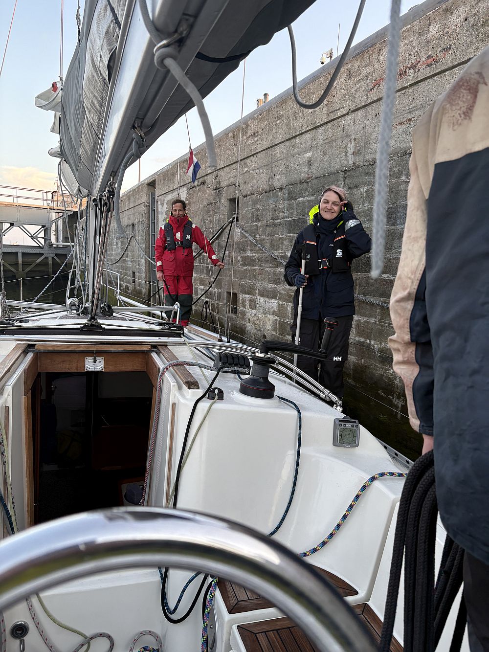 Die Salute mit Mirco, Charlotte, Randi, Anna, Benny und Sebastian vor der Schleuse in Lelystad