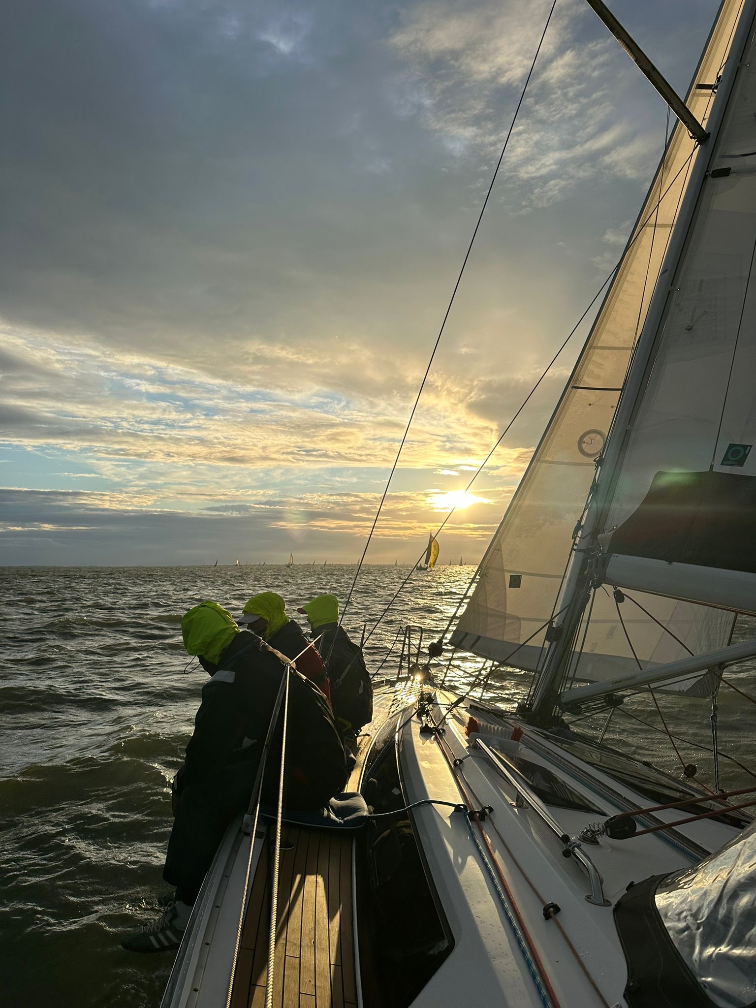 Bavaria 37 sind – da trafen wir doch tatsächlich ausgerechnet auf die Crew besagten holländischen Bootes, sodass wir unsere Fotos austauschen konnten. Dummerweise verpassten wir auf dem Rückweg zum Schiff die Herren unseres Bootes, sodass wir vor einem verlassenen Schiff standen und uns dann nochmal auf den Weg ins Getümmel machen mussten. Nach einem zweiten Abendessen brachen alle außer Benny, der in den Kneipen Medembliks noch die ein oder andere ominöse Bekanntschaft schloss, müde auf in Richtung Koje. Am Sonntag hieß es dann Ausschlafen, bis wir uns auf den Heimweg nach Lelystad machten. Dabei spielten wir Wassertaxi für Jan B., der dazu auch noch in den Genuss unserer kulinarischen Verpflegung kam. Schließlich ging eine tolle Segelwoche, geprägt von viel Sonnenschein bzw. Sonnencreme und Diskussionen über die richtige Anzahl an Eiern sowie Essenskombinationen (nein, Stroopwaffel mit Salami oder Schokovlokken mit Käse sind nicht akzeptabel, Pizza mit Hollandaise und Ananas hingegen schon) viel zu schnell zu Ende. Bei der 24 Uurs 2025 erreichten wir in Tocht 4 mit 142,28 (bzw. 101,16) Seemeilen den 29. Platz von 45 Schiffen, während die Gatica mit 158,88 (bzw. 119,23) Seemeilen einen beachtlichen 4. Platz belegte. Insgesamt sind 387 Boote gestartet, von denen 270 regelkonform ins Ziel gekommen sind.