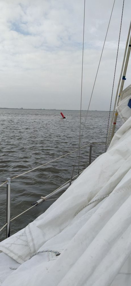Der Morgen war ruhig, als unser Boot ein 22 Fuß Kielschwerter aus dem Hafen Lauwersoog hinausfuhr. Es ist Ende Juli, die Neugier war größer als die Nervosität. Wir folgten dem Weg über das Wattenmeer. Es gab sechs Untiefen, aber die auflaufende Tide half uns. Die Groningerbalg und das Lutjewad zeigten uns den richtigen Kurs. Wir waren zu früh dort und ankerten zweimal insgesamt 45 Minuten auf der Wattfahrt bis genügend Wasser unter dem Kiel stand.